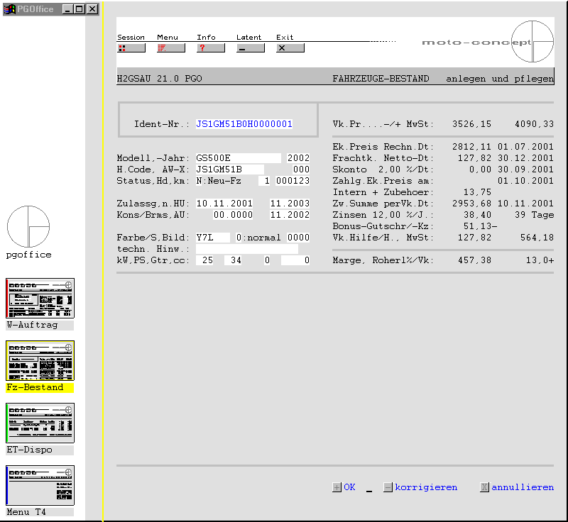 angebotenen Fahrzeug-Bestand wie auch eine Nach-Kalkulation,